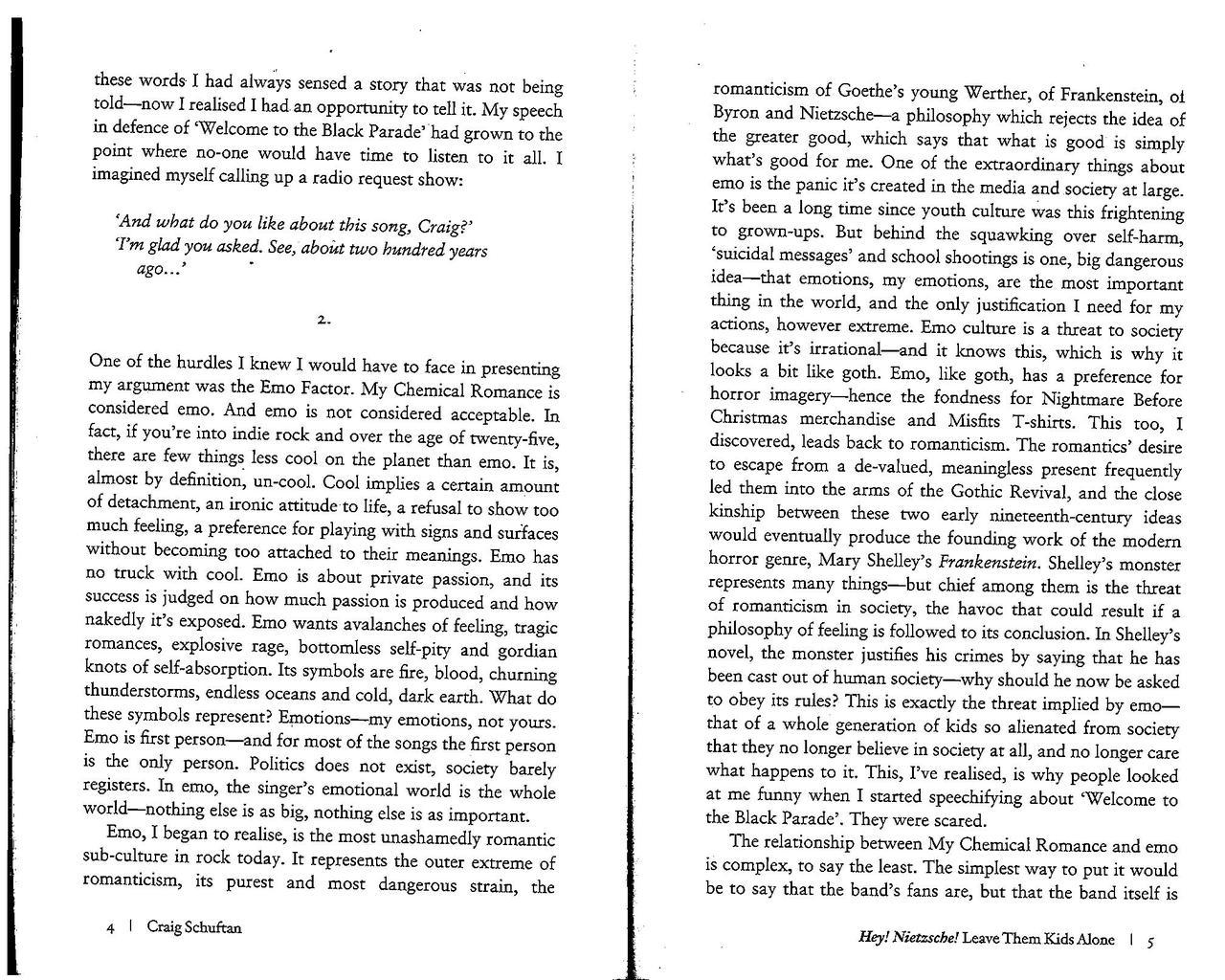 “The Black Parade… was always an album that had exacted a mental duty, from its birth to its death… Suddenly My Chemical Romance, and Gerard in particular, became both the leaders of a tenuous movement they wished to have no part of – emo – and its villains-in-chief. They were blamed for the suicide of teenagers by sensationalist journalists; when other black-clad teenagers were beaten by thugs in Mexico, it was My Chemical Romance who were, somehow, found to be at fault. And it was because The Black Parade had become much bigger than the band and they were shocked and appalled when they could no longer command what they had created.”